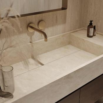 Our products has the chic to give our clients bathroom and kitchen elegance and sophistication. Our Client bought sintered stone B basin,shower sets ,shower niches and bathroom accessories from our factory.In their showroom,there are many of our products displayed there.